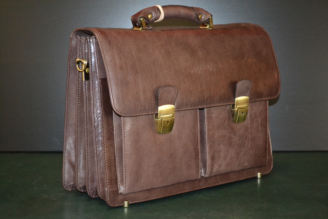 Flapover with metal buckles 2 large open pockets at front plus a zip pocket under the flapover part