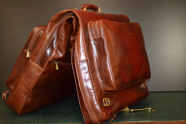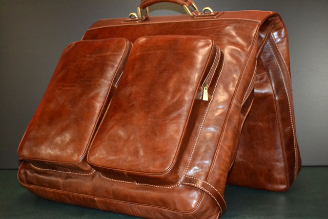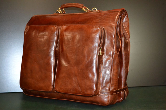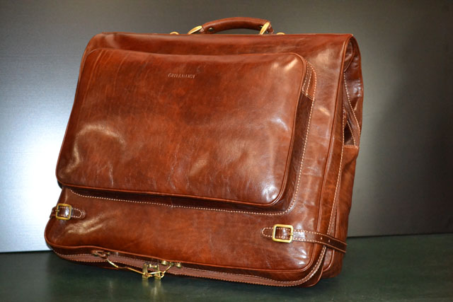 Polished calf-skin leather garment bag