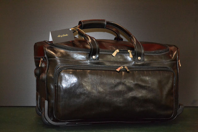 Polished calf-skin leather trolley, big size