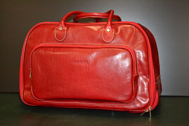 Double padded leather top carry handle which can be fixed while pulling the bag on wheels